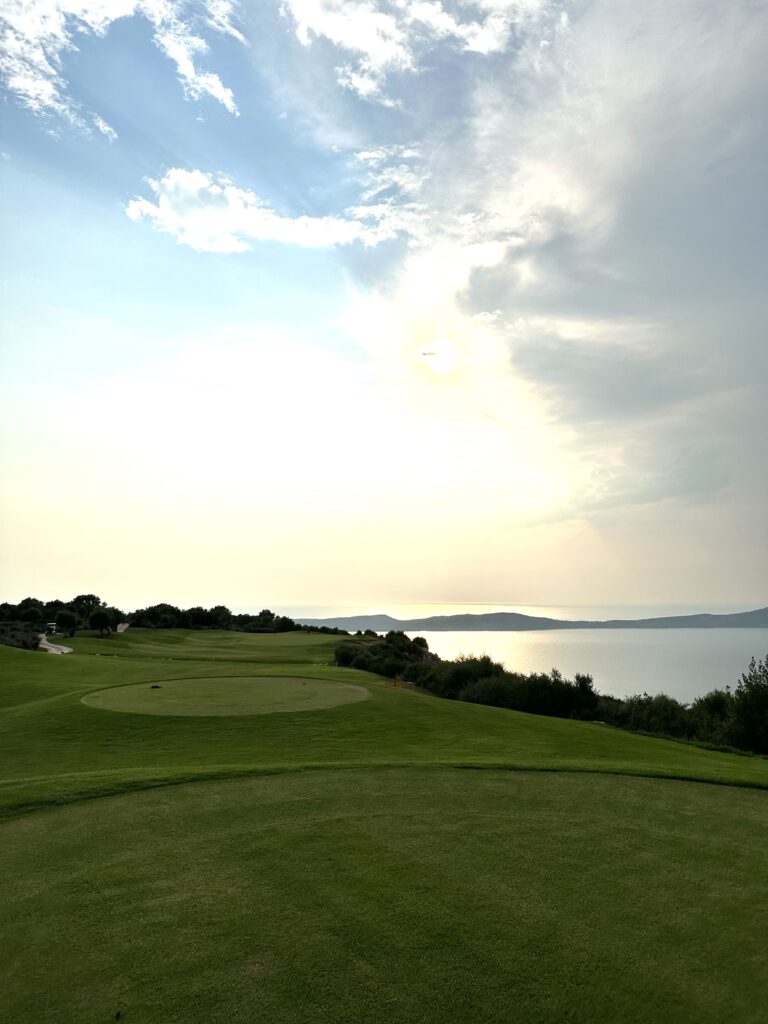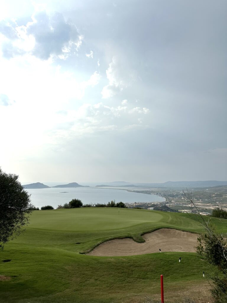 What a course! I absolutely loved this course. You are playing ontop of a hill with the most beautiful views Ive ever seen on a golf course of the Navarino Bay. OMG, I felt like I was playing in sunset heaven. On top of that the course is in top condition and layout is challenging on a…. Level. Stay in the clubhouse, you can have food and drinks in the sunset overlooking the bay. It is an amazing experience.